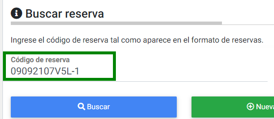 3. A Código de reserva mezőbe írja be a következő kódot: 09092107V5L-1 , majd kattintson a Buscar (Keresés) gombra.
